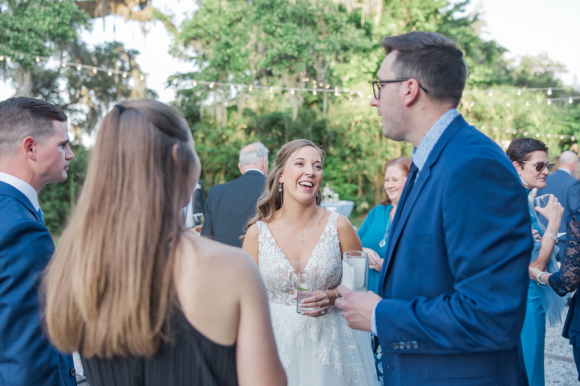 Afterwards, I captured a few newlywed portraits around the stunning property. I loved that the florals throughout the venue matched the couple’s wedding colors, making the entire setting feel effortlessly cohesive and natural. We then made our back to the Oyster Patio at The Carriage House where guests mingled, enjoying refreshing drinks and delicious hors d’oeuvres, which of course included fresh oysters.